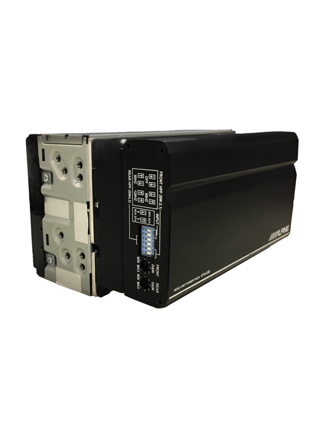 Boost up your sound with the 4-channel KTA-450 Power pack amplifier of Alpine’s exclusive Dynamic Peak Power (DPP). DPP prevents the KTA-450 from clipping up to double the power for sudden and dynamic sound.